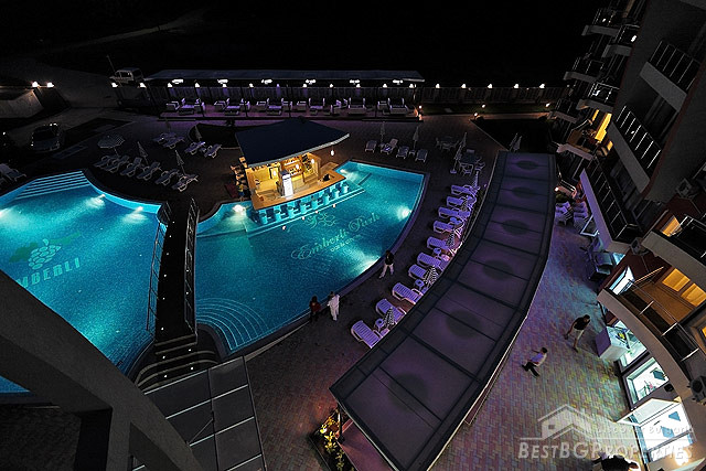 The complex offers superb resort facilities. Located in the new northern part of the resort, it is just in a short stroll from the wide sandy beach. This is the key development zone of the resort and features only brand new villas, small apartment complexes and modern family hotels, fully matching the style and ambience of the complex. The new 2-storey shopping mall and all the restaurants, shops, cafe-bars and attractions of Lozonets are within easy walking distance.
