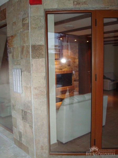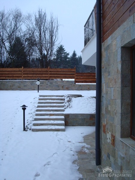 The facade surfaces feature natural stone, white mineral stucco and wood. The windows are of very high quality - 4 panels PVC with 24 mm thickness ‘Golden oak' in color. The wood and glass balcony railings feature architectural designer handles.