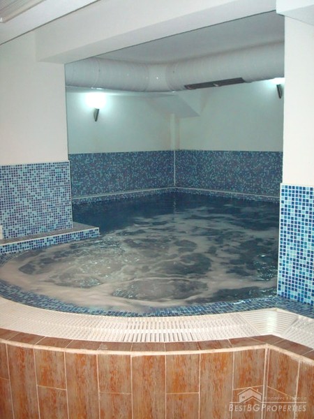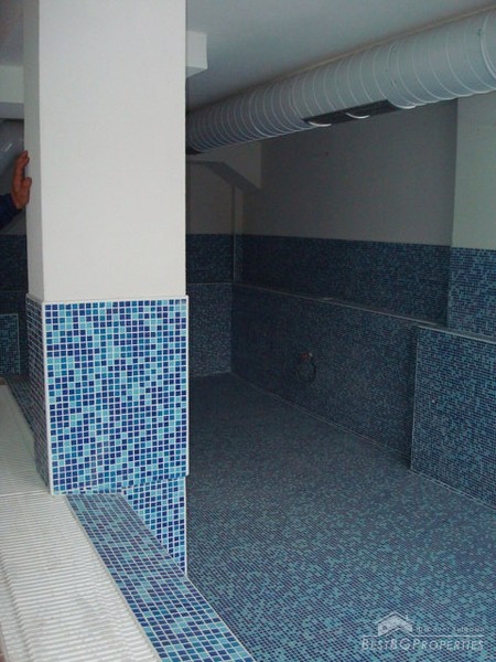 The building comprises 56 luxury one-, two- and three bedroom apartments, a sports center with a swimming pool, sauna, steam bath and ski center.
