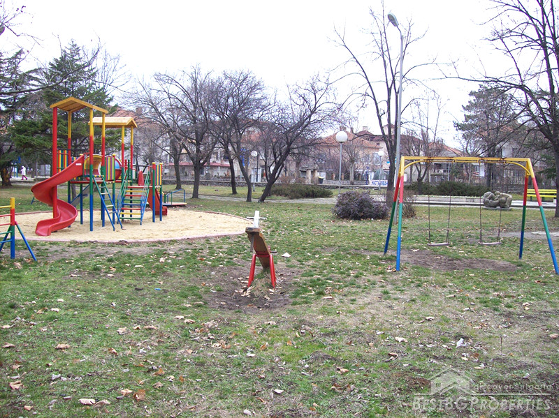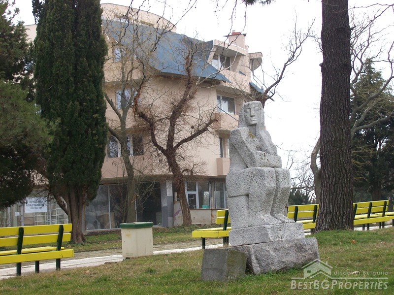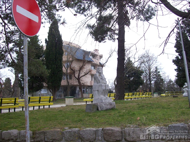 The building is located in the park in the center of the town in a key area in proximity to the bus station, kindergarten, and a school. The property is perfect for investment, giving away for rent, use as an office or for living. It is 22 km away from Bourgas and 3 km from the famous camp site "Gradina".