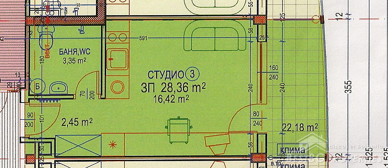 The building is in a great location - a beautiful and well maintained by the municipality garden with playground for children and fitness center. Act 16 will be received in June 2012. Now there is act 15. No annual maintenance fee.