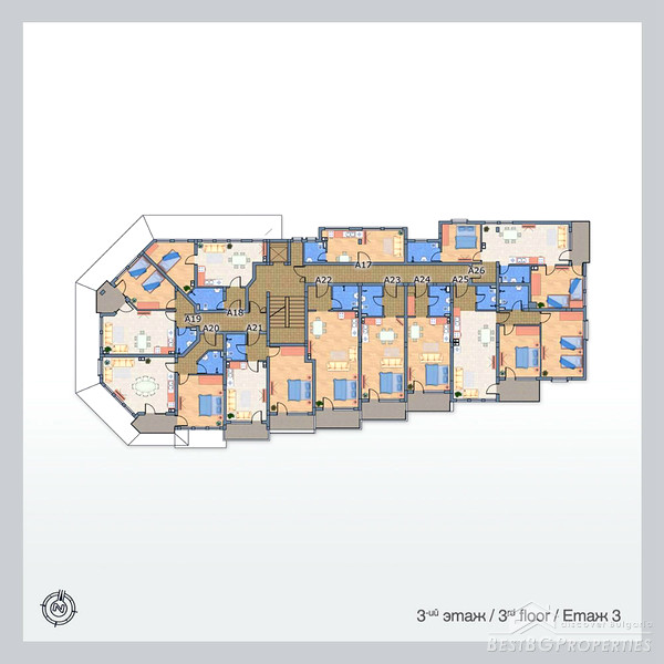 In the complex there are studios and apartments with one and two bedrooms. All apartments are fully equipped with furniture and equipment, up to the full set of household utensils.
