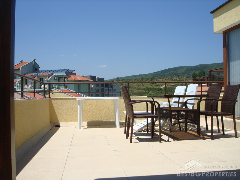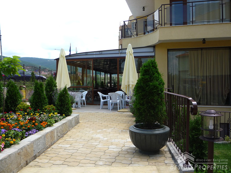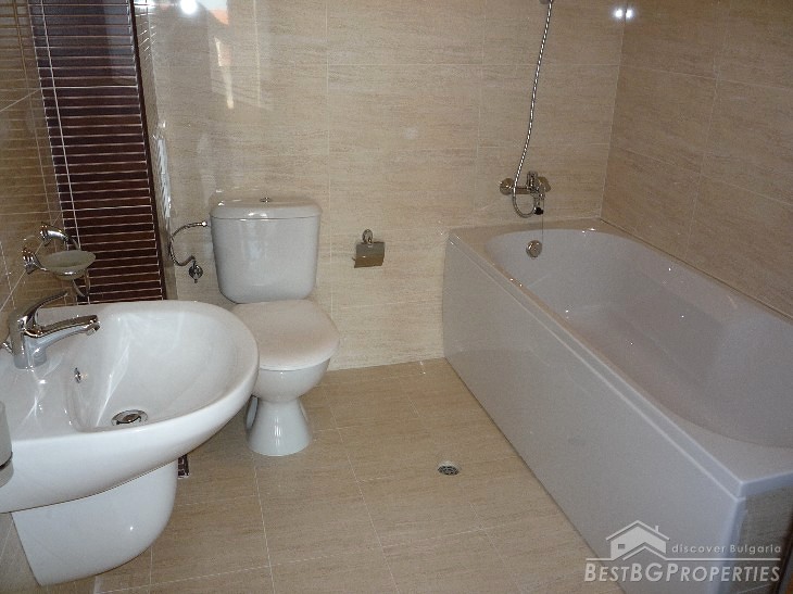 The apartments are designed for whole year around living. The walls and inner separators are made from Italian ceramic bricks. Inner finishing is from natural two lair plaster, covered with latex paint. The floors are heated with ceramic tiles. For the heating was used German high quality equipment. There is outside hydro isolation. Inner and outer doors are from natural wood.