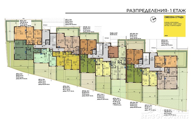The park is built on an area of 2750 square meters. Each apartment on the first floor will have an own patio and access to a landscaped garden, alleys, recreation areas, gazebo and children's playground.