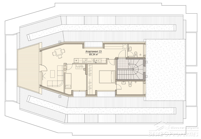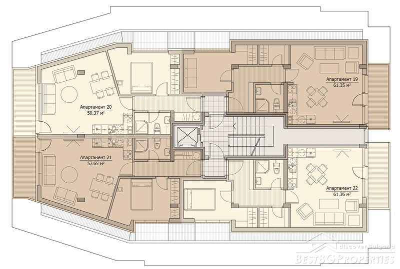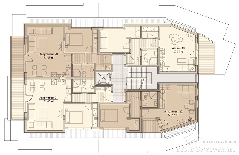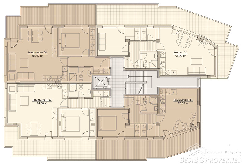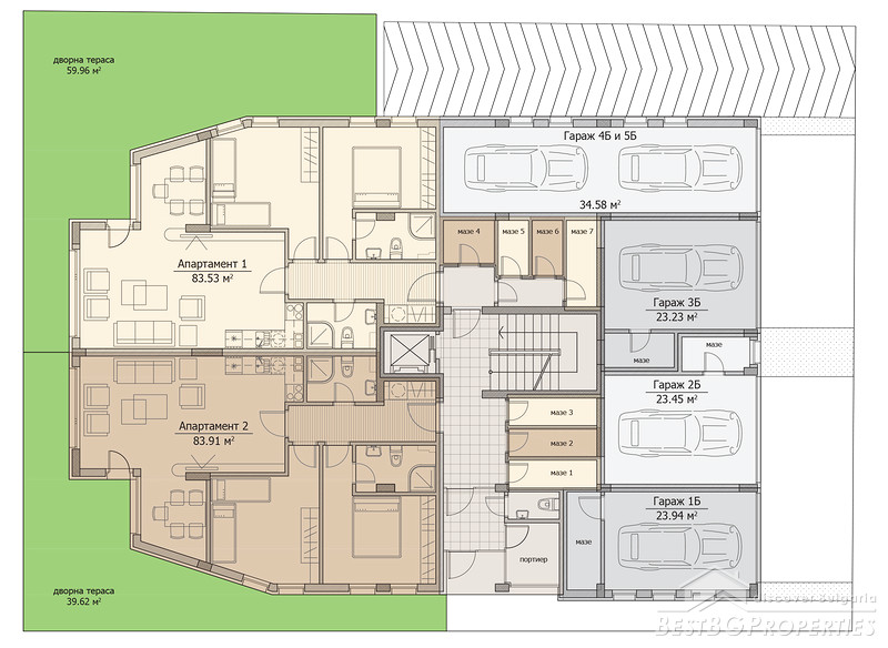 The architecture of the building is traditional and in the same time modern and elegant, emitting coziness and solidity. The building is built with quality materials meeting the current standards for energy efficiency and environmental protection.