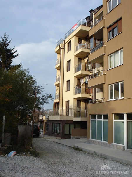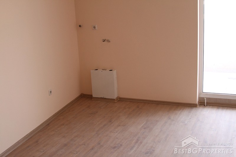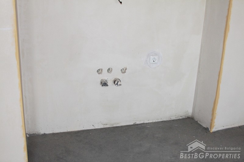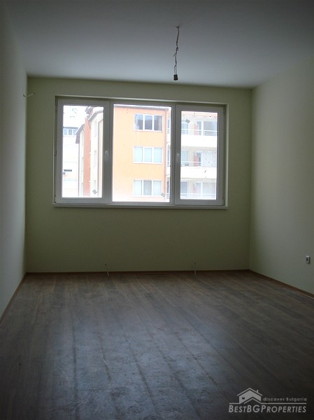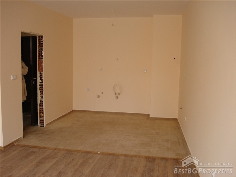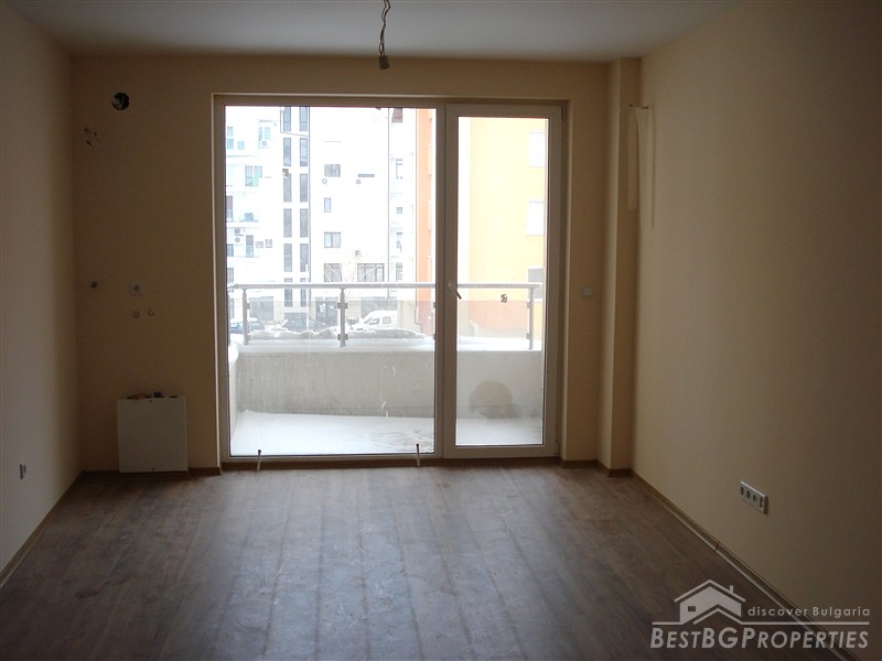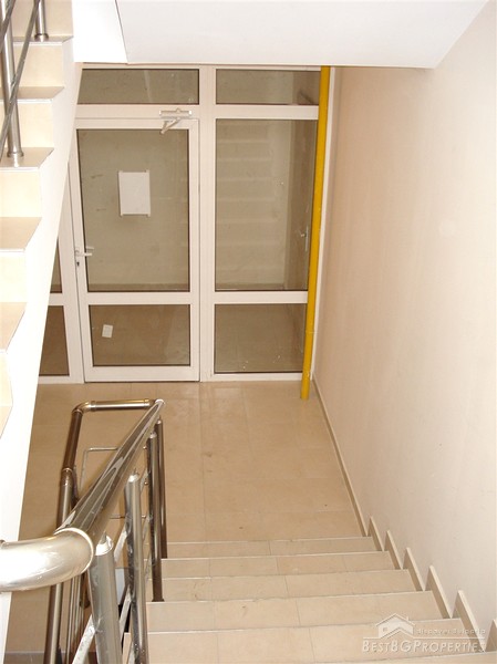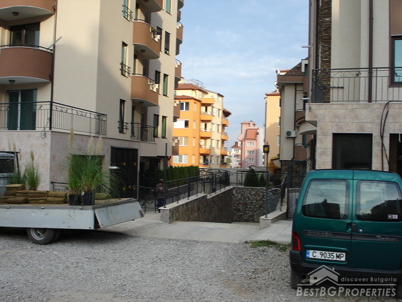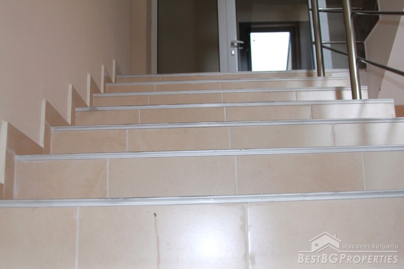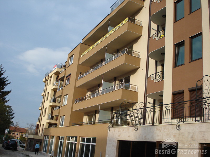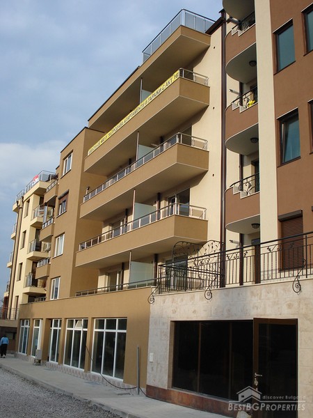 The building is completely finished consisting of four residential floors and a stores floor. It comprises two type apartments - studios and one bedroom. There are around 15 apartments for sale - 13 one bedroom apartments and two studios. The apartments have east and west exposure and vary from 72 to 75 sq m in size. The studios comprise total living area of 53 sq m. It is necessary to buy a parking space with each apartment.