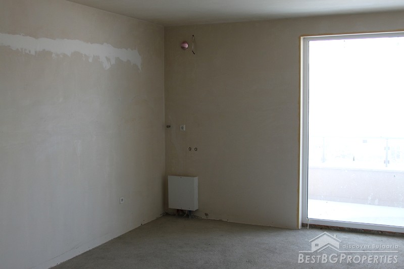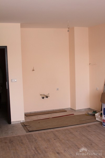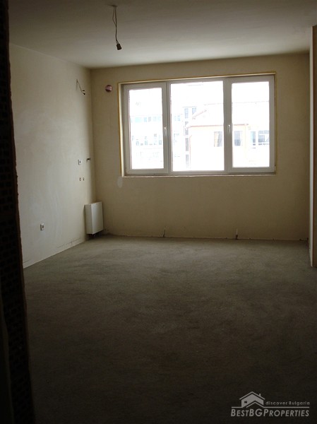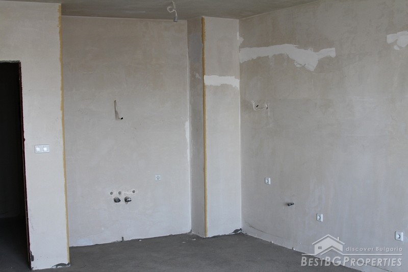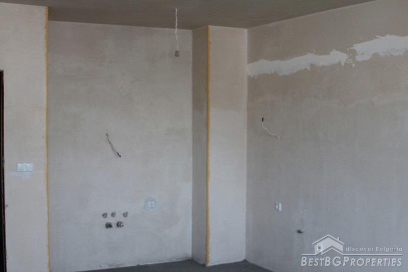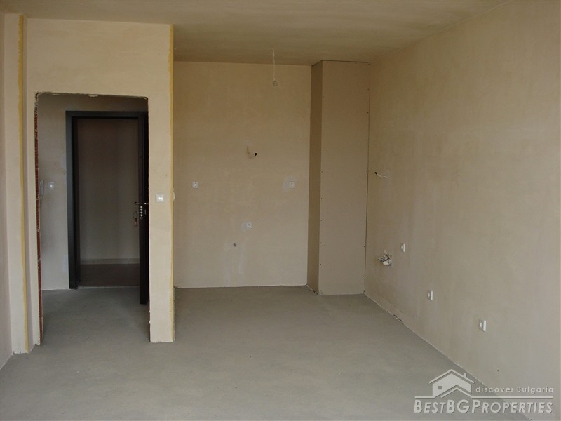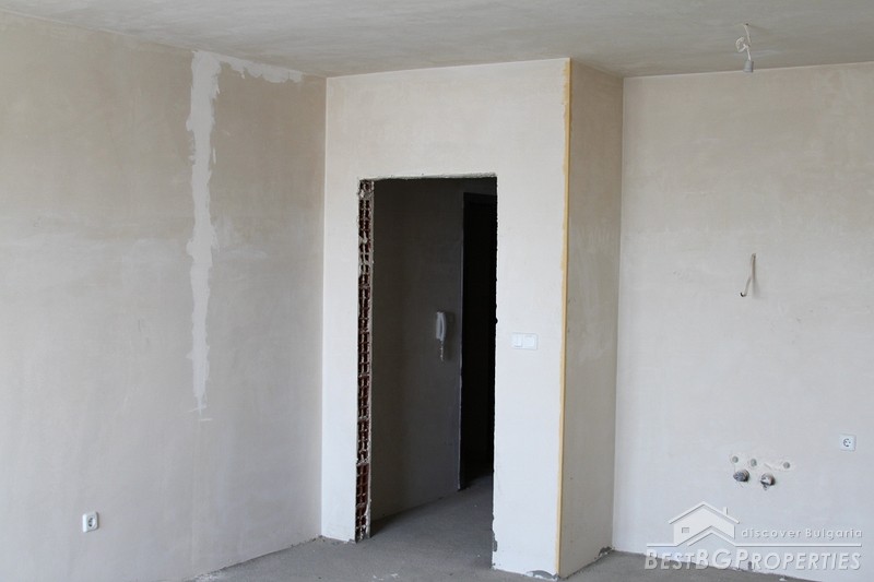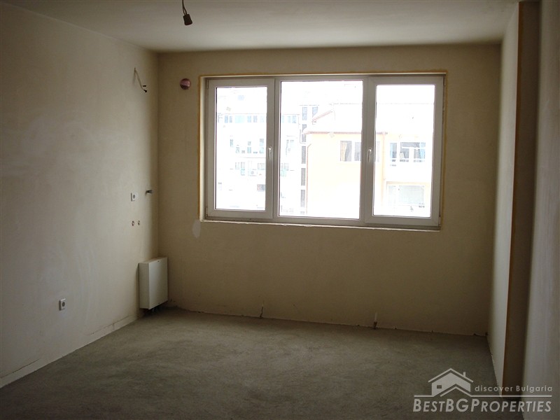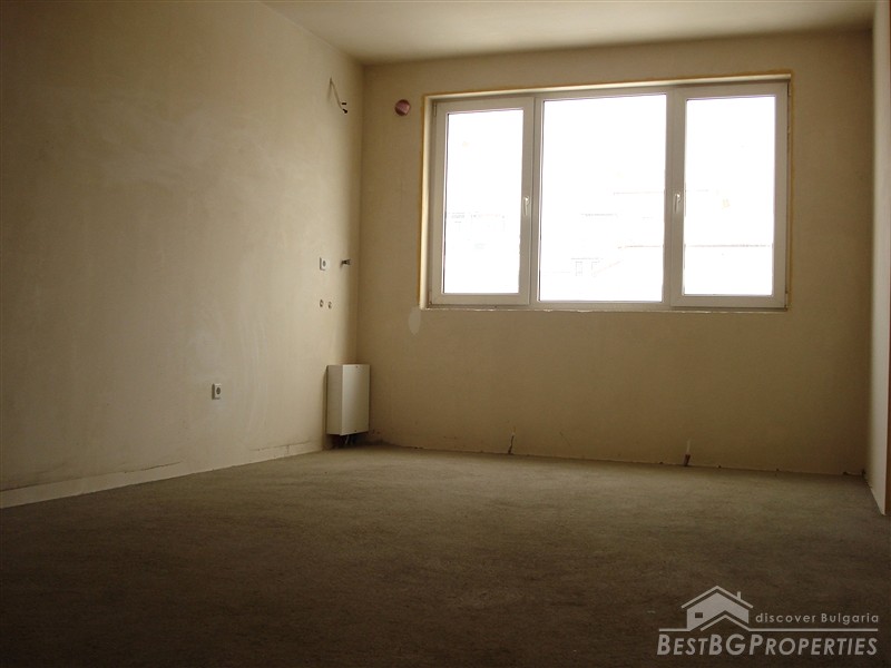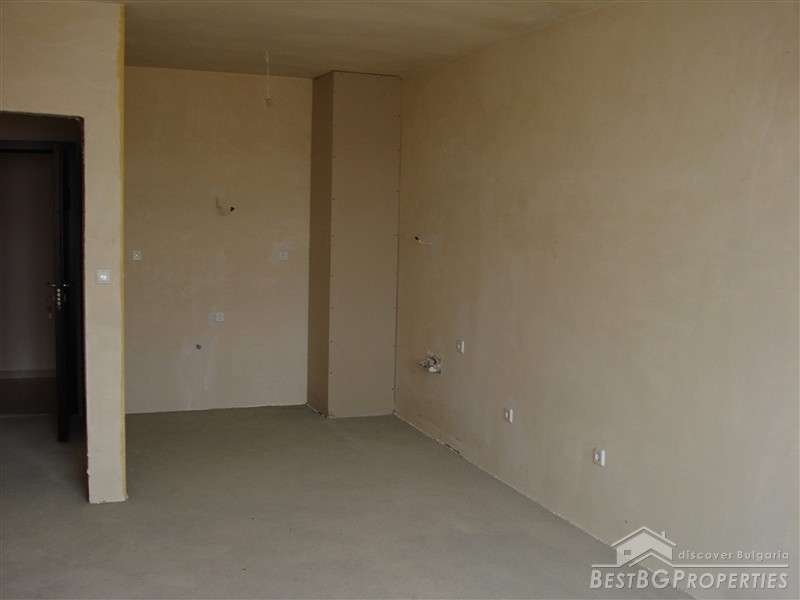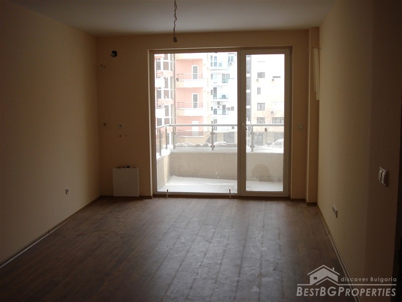 The building is completely finished consisting of four residential floors and a stores floor. It comprises two type apartments - studios and one bedroom. There are around 15 apartments for sale - 13 one bedroom apartments and two studios. The apartments have east and west exposure and vary from 72 to 75 sq m in size. The studios comprise total living area of 53 sq m. It is necessary to buy a parking space with each apartment.