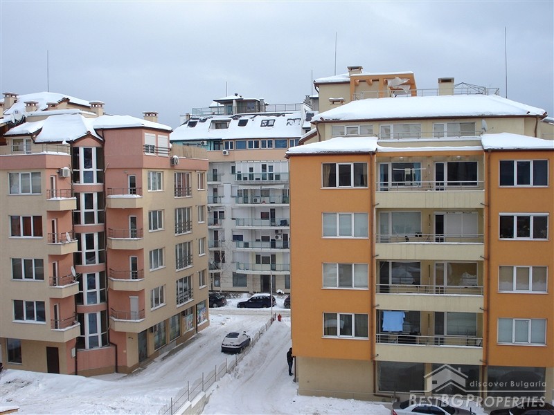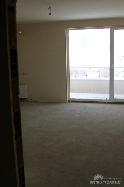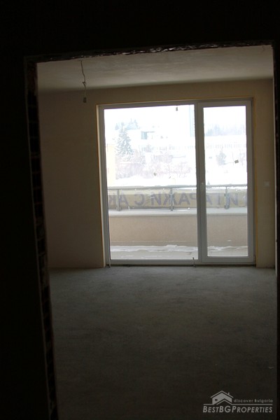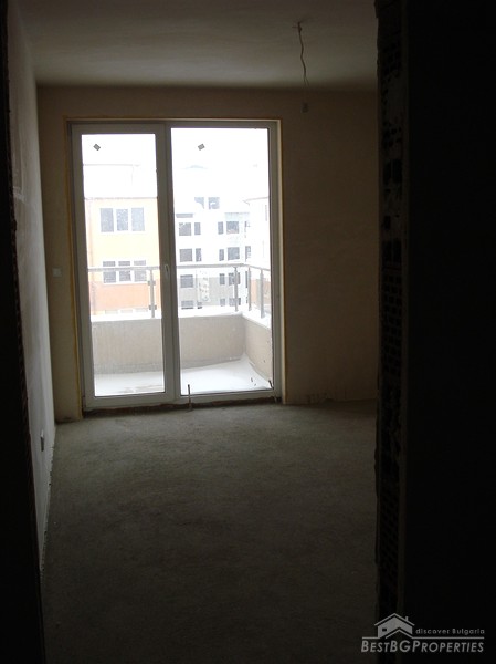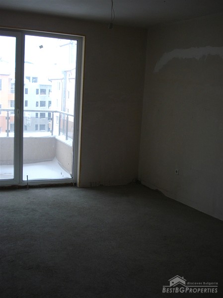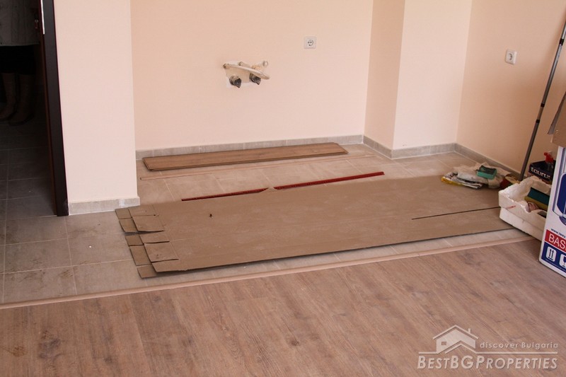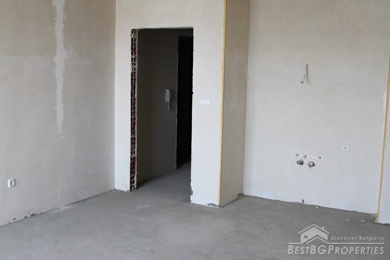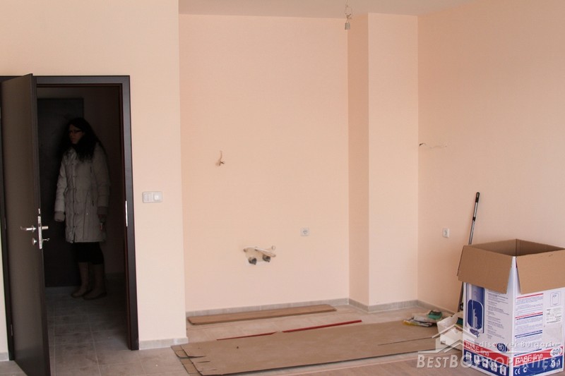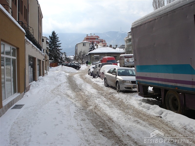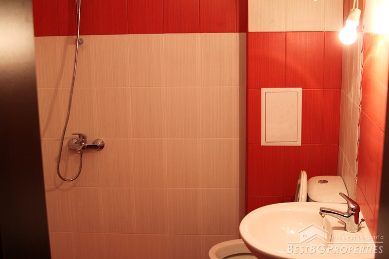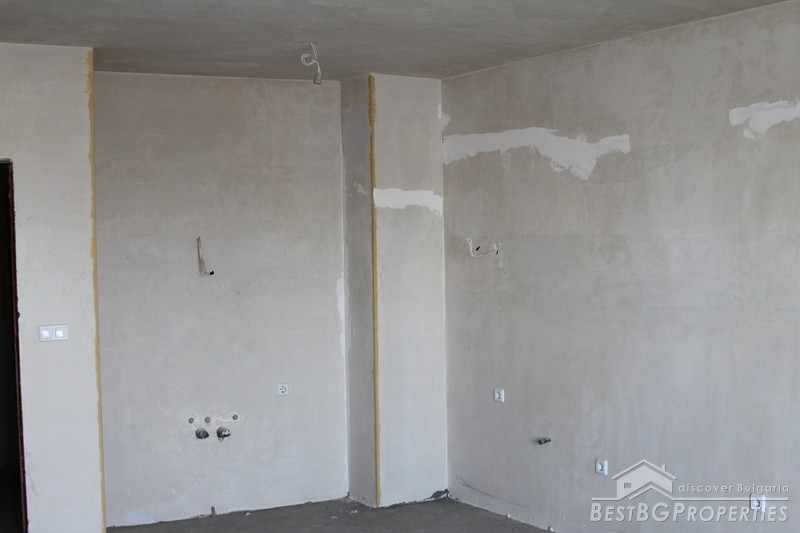 The building is completely finished consisting of four residential floors and a stores floor. It comprises two type apartments - studios and one bedroom. There are around 15 apartments for sale - 13 one bedroom apartments and two studios. The apartments have east and west exposure and vary from 72 to 75 sq m in size. The studios comprise total living area of 53 sq m. It is necessary to buy a parking space with each apartment.