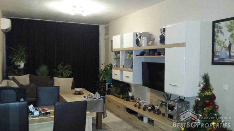 The apartment consists of a spacious living room with kitchen and guest room in one, two bedrooms, bathroom with toilet, closet and a second toilet, which is currently a laundry room. The property benefits with very functional distribution of the premises. It comprises with total living area of 80 sq m. The exhibition is towards East.
