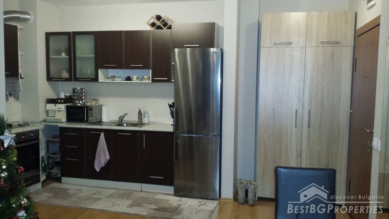 The price includes complete furniture and equipment. The finishing is turnkey. The heating is optional - on electricity or central. The furniture is very stylish. The kitchen is equipped with all necessary electrical appliances and the bathrooms have sanitary. The flooring in all rooms is laminate.