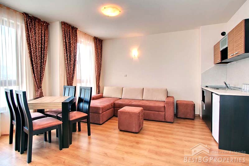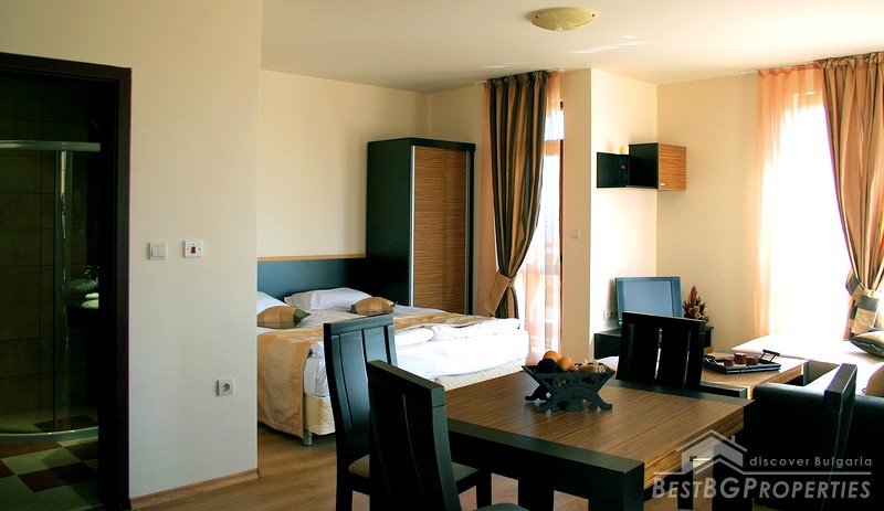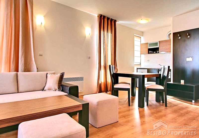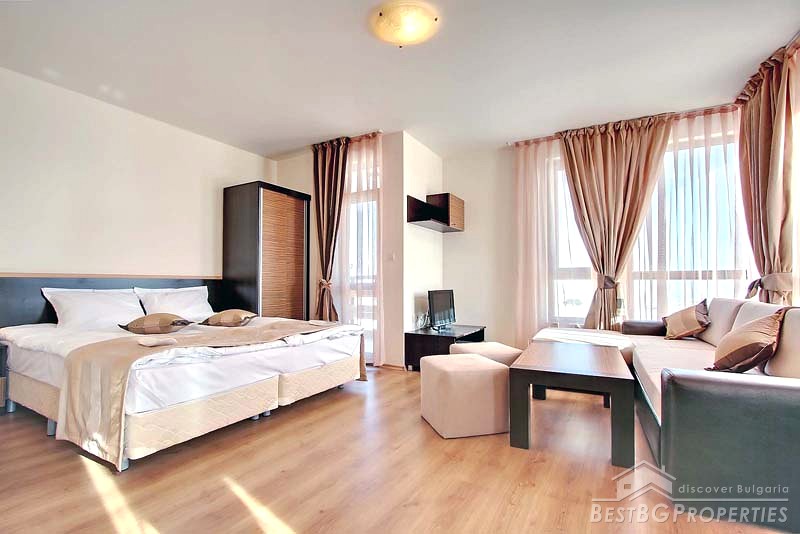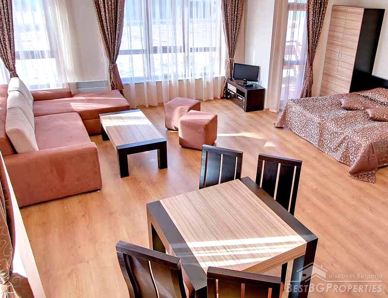 The development consists of 106 spacious Studios, 1-and 2-bedroom apartments with full property management and rental program. It is built to the highest standards and specifications by leading Bulgarian building companies. The people in the complex are able to enjoy the spectacular views onto the golf course, mountain and leisure facilities, including indoor/outdoor heated swimming pools, gymnasium, sauna, Jacuzzi, restaurant, bar, 24 hour room service, etc.