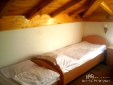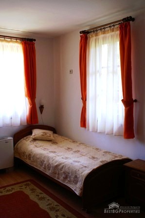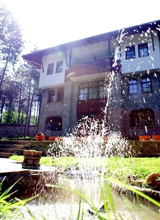 The hotel is built in a typical style of the village, using only natural materials - wooden gates, doors and windows, stone wall, alleys in the yard covered with stone slabs, water wheel, and inner furniture. The hotel consists of a fully equipped restaurant with 40 seats, 9 luxuriously furnished guest rooms with 30 beds and a landscaped garden area with 1040 square meters. All rooms have private bathrooms with bath or shower. Each room has its own style and color and differ one from another with the different furniture, colors of the walls, fabrics and curtains. The complex comprises with a sauna, Jacuzzi and a barbecue.
