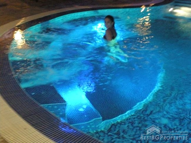 The hotel has a capacity of eight luxury rooms and 4 suites, two of which with their own saunas. The hotel part also has 5 garages, 2 with inside connection to the hotel. The complex consists of a restaurant (150 seats), steam bath, sauna and two outdoor swimming pools, one of which for children. The larger pool is equipped with hydro jets and indoor Jacuzzi.