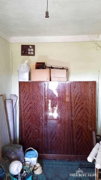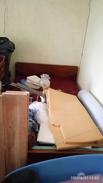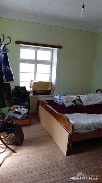 First floor - entrance leading directly into a room with a bed and a stove. To the right of this room there is a closet. To the right of the closet is a second room with a bed, a sink and a table. On this floor there is also a small bathroom with a toilet and a workshop with tools.