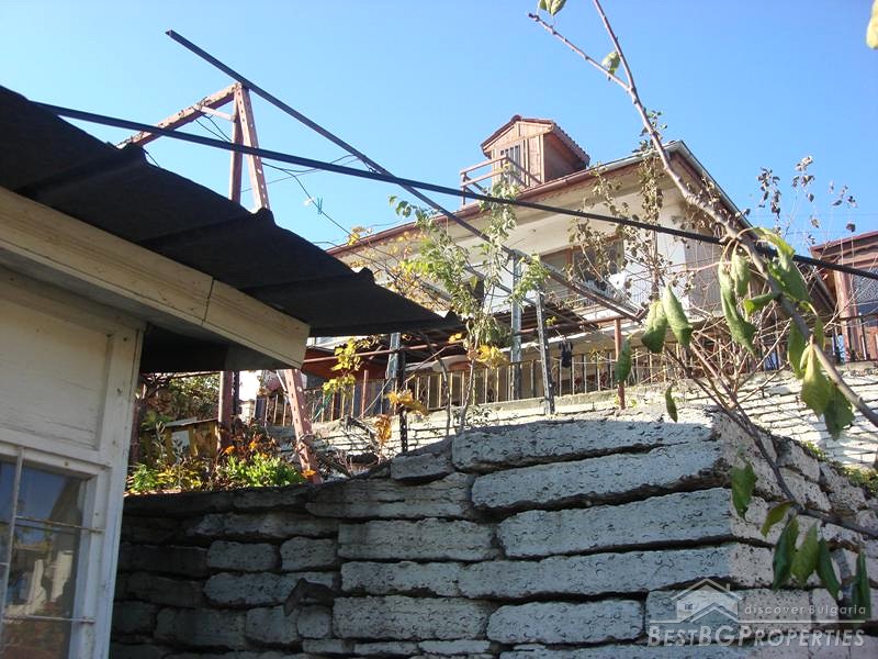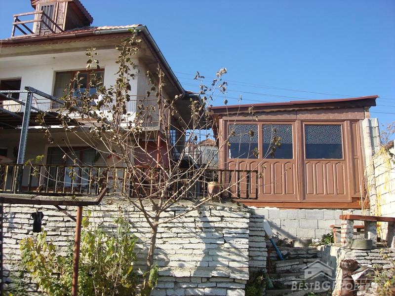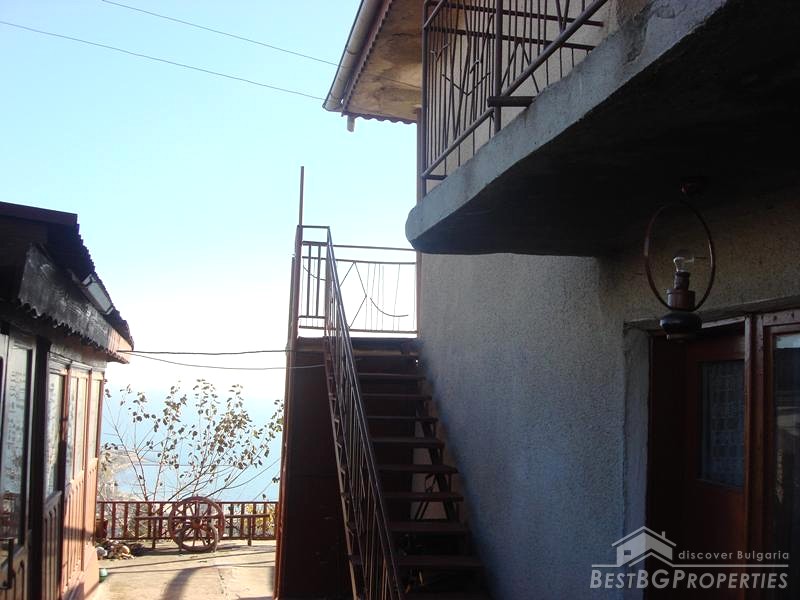 The house is located 2 km from the center of the city. From the property opens magnificent view towards the sea. The house has total living area of 136 sq m and the plot which the house is built on is 431 sq m large. The house is two storeys made entirely of brick and stone. Each floor comprises three bedrooms with one bathroom and WC. In front of the house there is a large veranda with panoramic view.