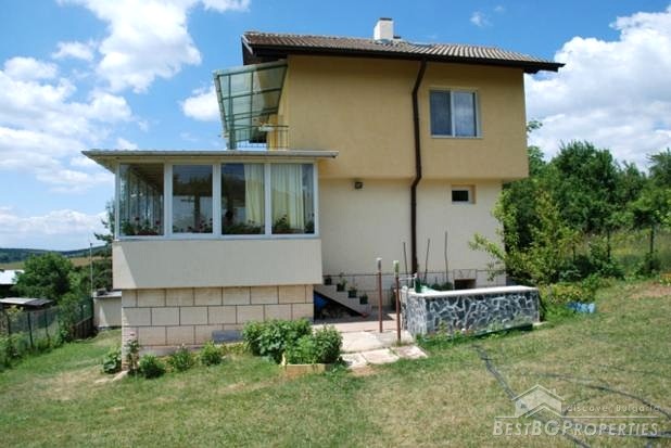 The house which is for sale is on three floors with total living area of 160 sq m. From the inside it is luxury finished with granite, marble and having local heating and many other extras. The house is built on a plot of land with total size of 760 sq m. The yard includes two additional massive outbuildings with total area of 50 sq m. From the house opens amazing views.