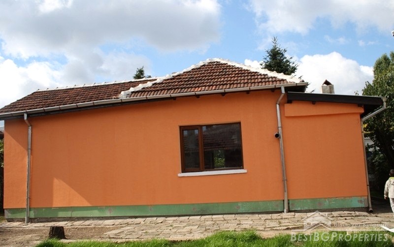 The offered house is after complete repairs. It has a new roof, exterior and interior insulation, new windows, new German outside plaster, fitted kitchen, fireplace, laminate and wooden floors, latex painted walls and ceilings. The house has total living area of 90 sq m. It comes with a large private garden with size 427 sq m.