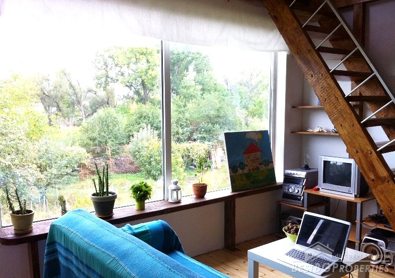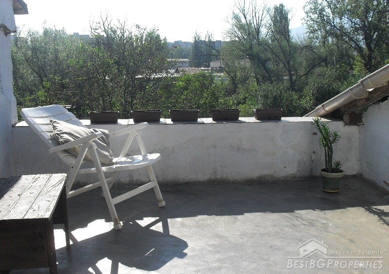 The parcel has size of 1050 sq m. On it there is a building with total living area of 270 sq m. It comprises of two floors. The ground floor consists of garages and has area of 100 sq m and ceilings with height 3.70 m. On the first floor there are two maisonettes with perfect distribution.