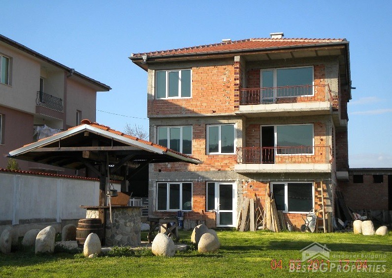 The house is on three floors. It stands on an asphalted road which guarantees easy access during the whole year. Around the property there is a concrete wall. There are all communications – plumbing, electrical installations, central heating, and aluminum window joineries.