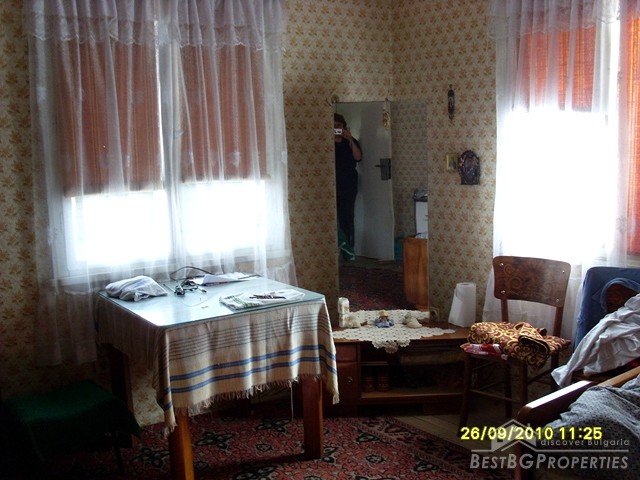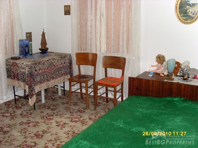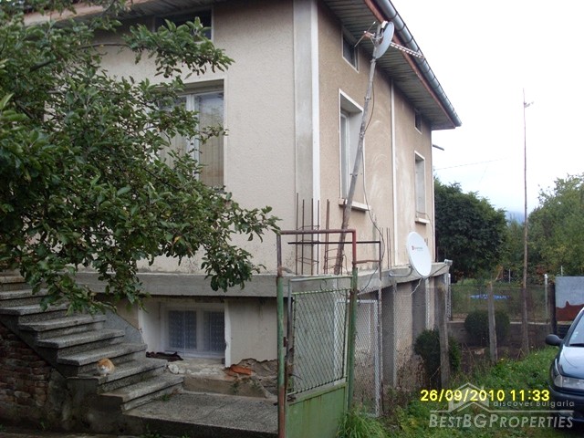 The house comprises total living area of 90 sq m and is built on a plot of land with total size of 780 sq m. The living area is distributed between two residential floors and an attic premise. The first floor consists of two rooms and a basement. The second floor has two rooms and a large, wide balcony with awesome mountain views. Above the second floor is the attic. The yard is nicely arranged with much greenery, fruit trees and veggies. It is connected to water and electricity. The house is generally in good condition and is ready to move in.