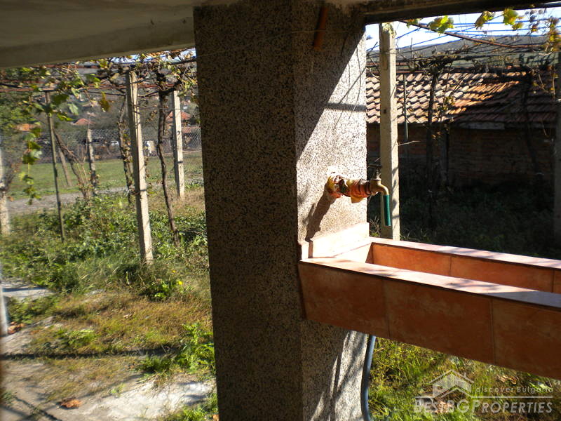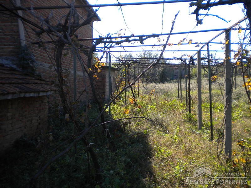 The property which is for sale consists of a two stories massive house built on a very spacious plot of land - 1260 sq m in size. The house comprises two residential floors connected with outer staircase. The first floor consists of a kitchen, winery and a bathroom. The second floor comprises a living room and three bedrooms. The house is in good condition and is ready to move in. It is for sale fully finished and furnished. The yard is 1260 sq m large and comprises a garage, summer kitchen, shed, a large additional agricultural outbuilding, outer WC, barbeque area, well with drinkable water and lots of fruit trees, grapevines and other sorts of greenery.