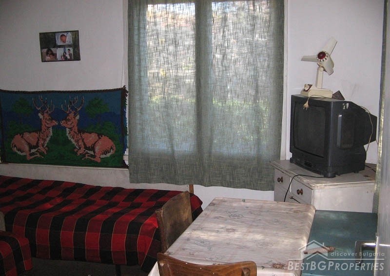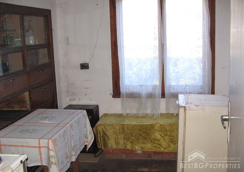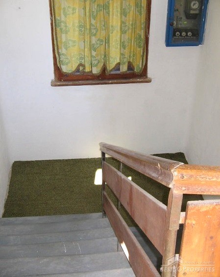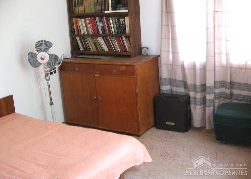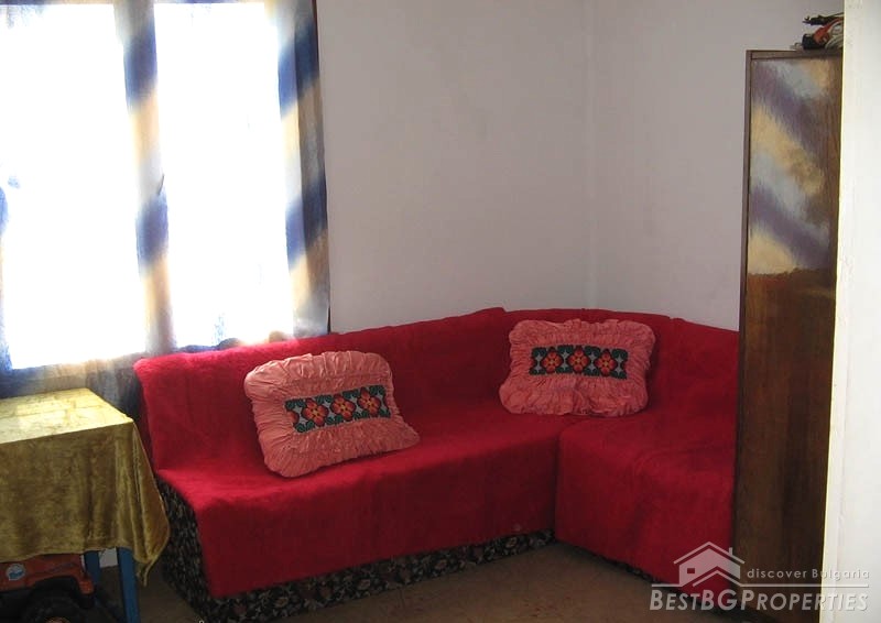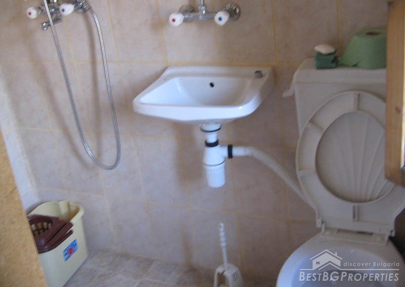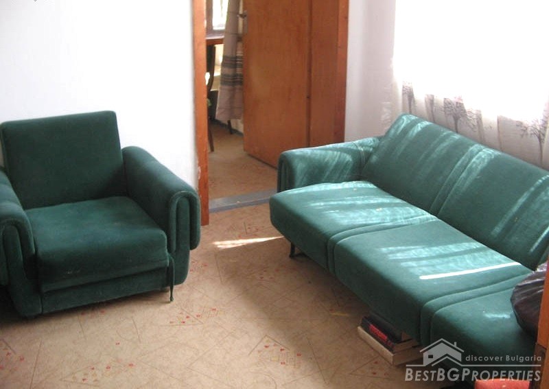 The house is brick built and has total living area of 130 sq m. The yard is with size 1377 sq m. The house was built in 1974. It has two concrete slabs, inside staircase to the second floor. The first floor has an area of 75 sq m and comprises of three rooms, kitchen and a bathroom with WC. The second floor is 55 sq m and consists of two rooms, kitchen and another bathroom with WC. There is a large terrace - 15 sq m above one of the rooms of the first floor.