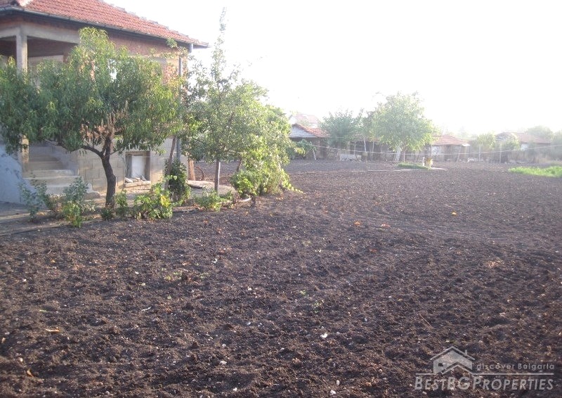 The property consists of a spacious yard, a massive house and adjacent building - all furnished. The total living area is 140 sq m. There are also some additional farm buildings - 100 sq m in size - connected to the electricity. The yard has its own water supply - through a probe with electrical pump. The yard is 1700 sq m in size - flat. The property is situated just 200 meters from the fruit market in the village.
