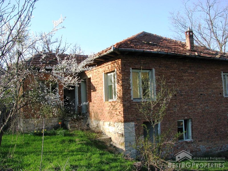 The property consists of a large house and very spacious yard. The house is two stories with total living area of 80 sq m. It is made out of brick and stone and is in very good condition. Only a slight refreshment renovation is required in order to move in. The house is built on a plot 2500 sq m large. It has stable stone foundations and consists of fist floor with size of 50 sq m and the second floor - 70 sq m large. The first floor comprises two rooms and a large premise suitable for a tavern. The second floor consists of four rooms, a premise suitable for a bathroom with WC, and a kitchen with fire place and oven. The house has water and electricity provided. From its windows opens wonderful mountain view. The land is completely flat. It also has preserved the foundations of another two buildings - large barn and another building. The property is accessible by a gravel road and another asphalted one, is leading towards the river.