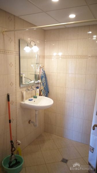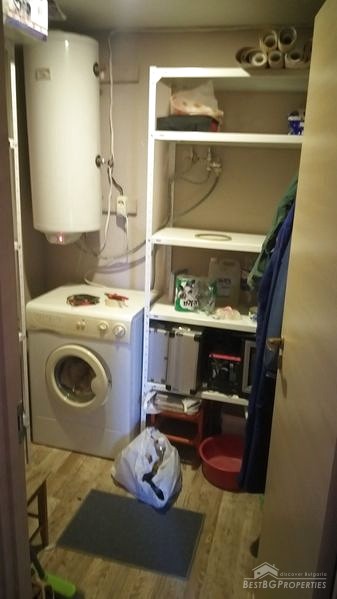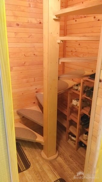 First floor - entrance hall, fitted kitchen (oven, fridge, microwave, kitchen cabinets, absorber), living room (sofa bed and chest, large dining and sitting tables, a fireplace with water jacket, TV), two bedrooms, large bathroom with toilet, closet with washing machine and water boiler.