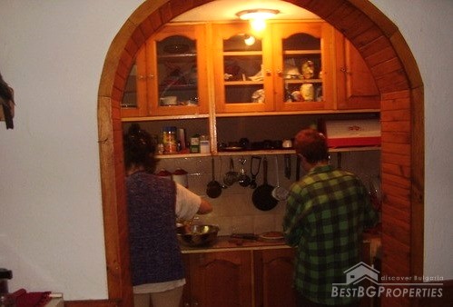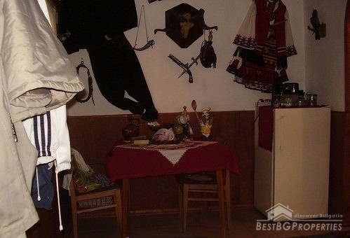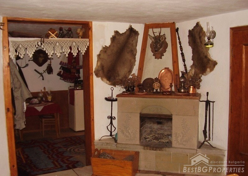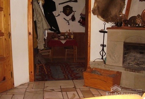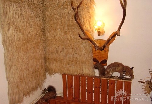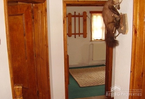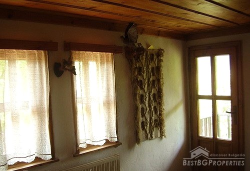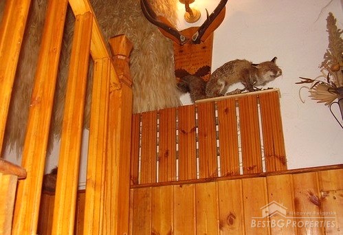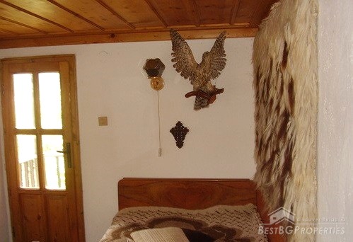 The bigger house has a living area of 130 square meters on two floors with a concrete slab ceiling with the possibility for building more floors. The first floor is with an area of 65 square meters and includes a tavern for 10 people in the Renaissance style, decorated with hunting trophies, rifles, pistols, rugs, carpets, etc. There is a large fireplace and another separate fireplace with water jacket which allows heating for both floors with radiators placed in every room. On this floor is also the kitchen plus a bathroom with toilet. The second floor has size of 65 square meters and comprises of three bedrooms, two balconies, bathroom and a toilet. The house was built in the typical for the area authentic architecture, and is registered as a cultural monument. It has magnificent views of the Mount Stidovo suitable for family holidays, celebrations and gatherings.