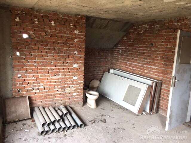 The size of the parcel is 520 sq m. The house has total living area of 85 sq m. It was built in 1999, but needs finishing. It comprises with two floors. On the second floor there are 3 bedrooms with a common terrace and a bathroom. The first floor consists of a living room, dining room, kitchen and a bathroom.