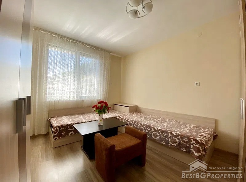 The main part of the house is facing south – very sunny, with a beautiful view of a pine forest. The area is extremely quiet and peaceful. The village has a wonderful park. It is next to the famous Kadin Bridge, and the river Struma.