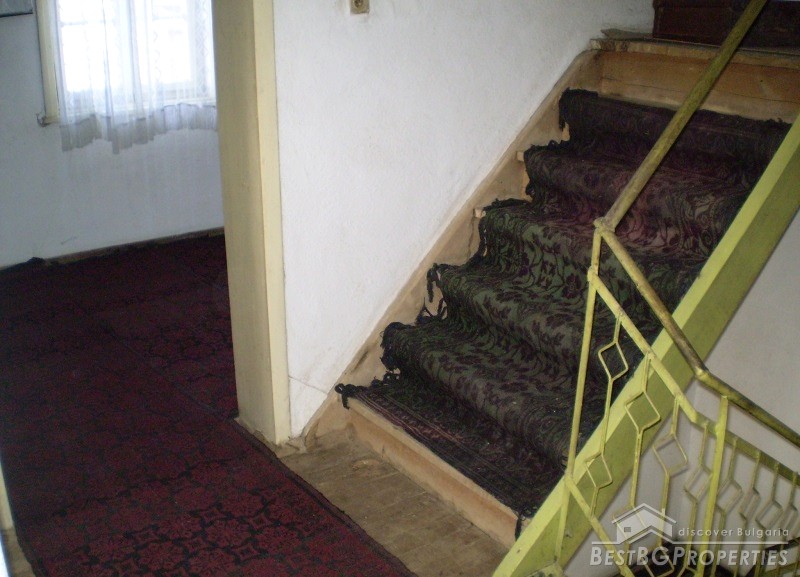 It is a brick built house with total living area of 140 sq m and a garden of 120 square meters. The house has a porch and in the yard there is a barn and an outside toilet. The house consists of the fallowing: Ground floor - two bedrooms, bathroom, closet, and inside staircase to the second floor. The second floor consists of 3 bedrooms and a balcony with excellent panoramic view. The house also has a basement.