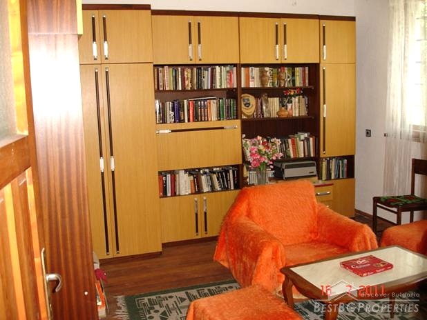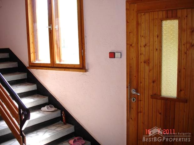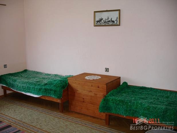 The house is situated in the center of the town and is built in 1992 year. It is two story and comprises total living area of 200 sq m. The house is very spacious with functional distribution of the premises. It also has a very well maintained yard with approximate size of 1000 sq m. The house consists of two bedrooms, living room, kitchen, two inner bathrooms with WCs, garage, summer kitchen, guest room with fireplace and wood decorated walls, large panoramic balcony. The outside decoration of the house is with stone, and the corridors are with Venetian mosaic. The house suits perfect for whole year around residence.