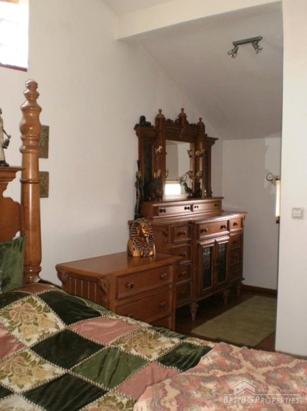 The roof- shingles are done in 2006 and there is 20 cm of blow-in insulation, walls- gypsum board with 6- 8 cm of blow- in cellulose insulation. All windows and doors are PVC salamander, floors- laminate, kitchen, dining room and veranda upstairs- terracotta. The connection between first and second floors is through inside open stairs. The house was built in 1997. It is made from stone base, solid brick walls and solid concrete between floors. You can enter the basement from the yard and it has a metal aluminum door.
