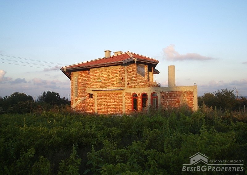 The house is not yet entirely completed. It hasn't been plastered from the outside. From the inside it has faience, terracotta and granite florings. One of the rooms is finished with wood. There are water and electrical installations. The house has total living area of 100 sq m spread between two residential floors. The plot area that comes with the property is 640 sq m in size. The property is situated in a ecologically clean area with fresh clean air and amazing views.
