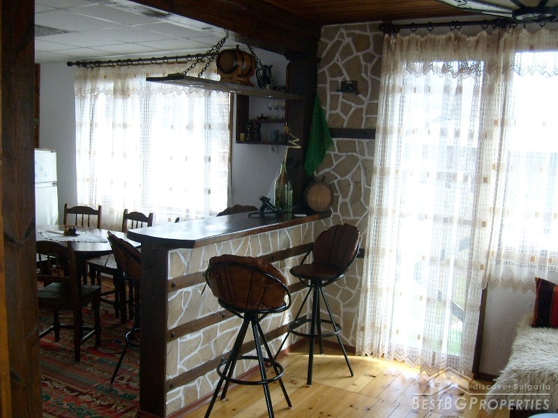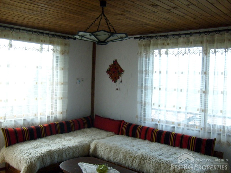 The house is built in the typical Rhodopian style. It has total living area of 240 sq m distributed on three floors. It consists of two bedrooms, one of which has one double and one single bed, fully equipped kitchen, living room suitable accommodation for two more people, a bathroom and a toilet.
