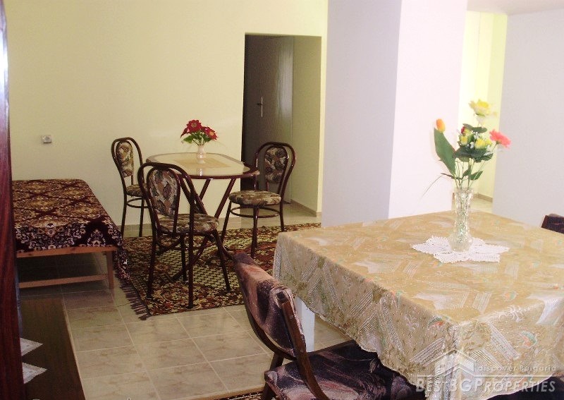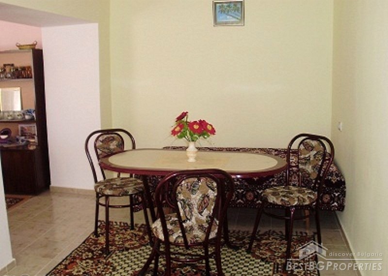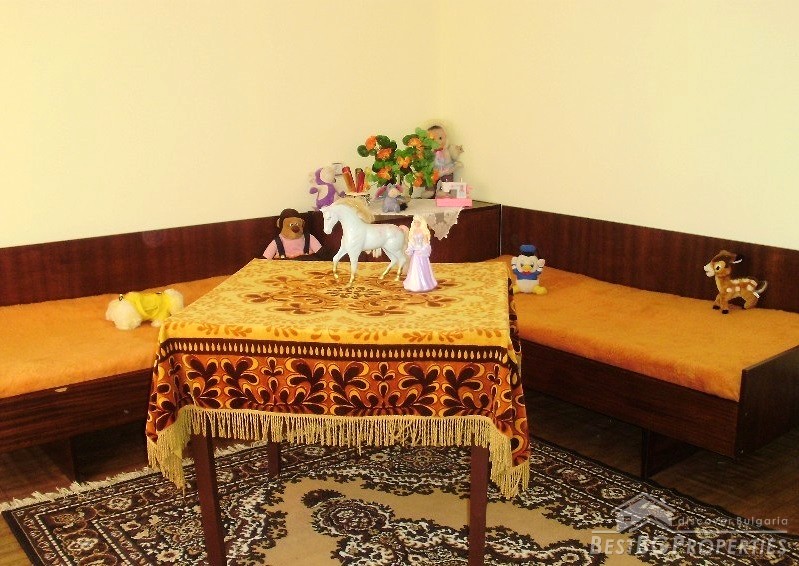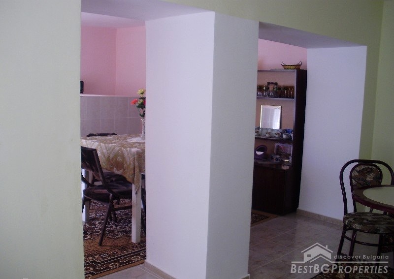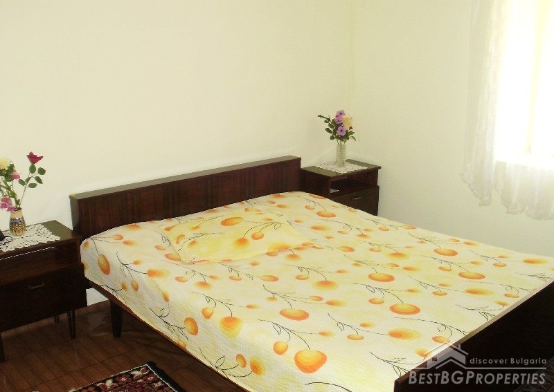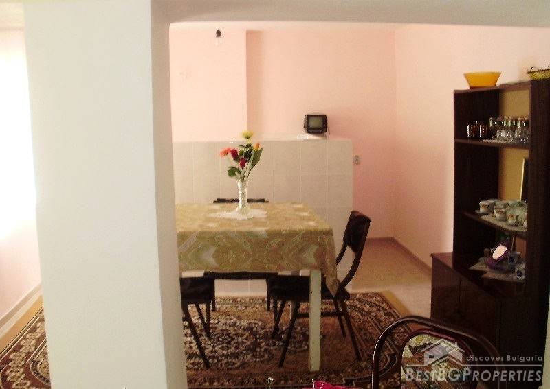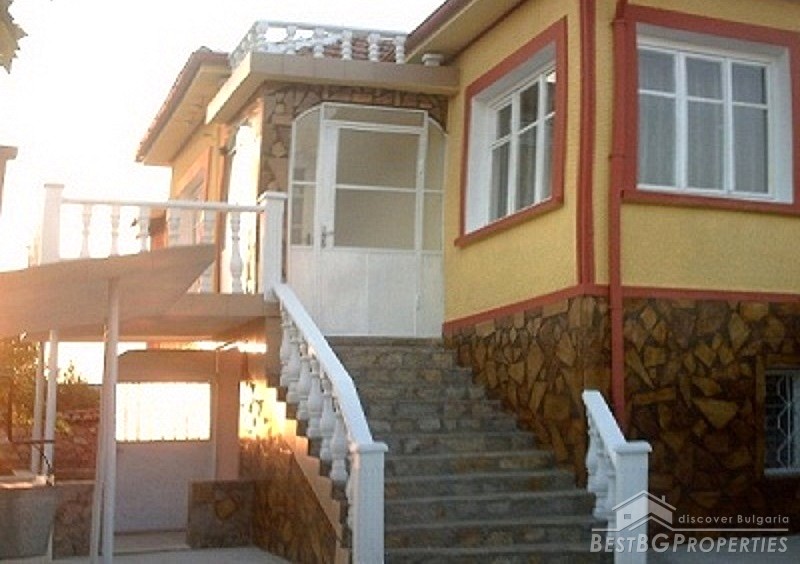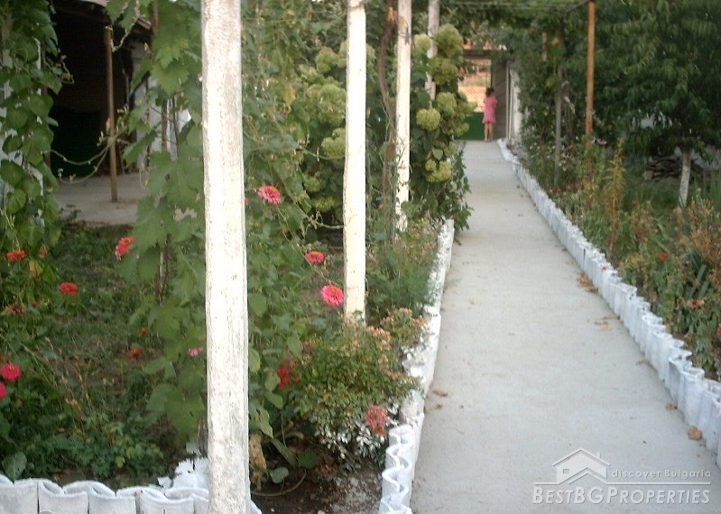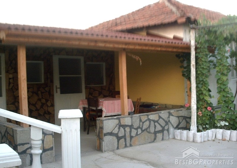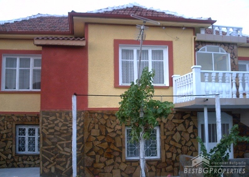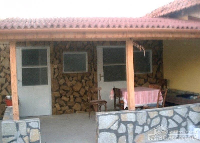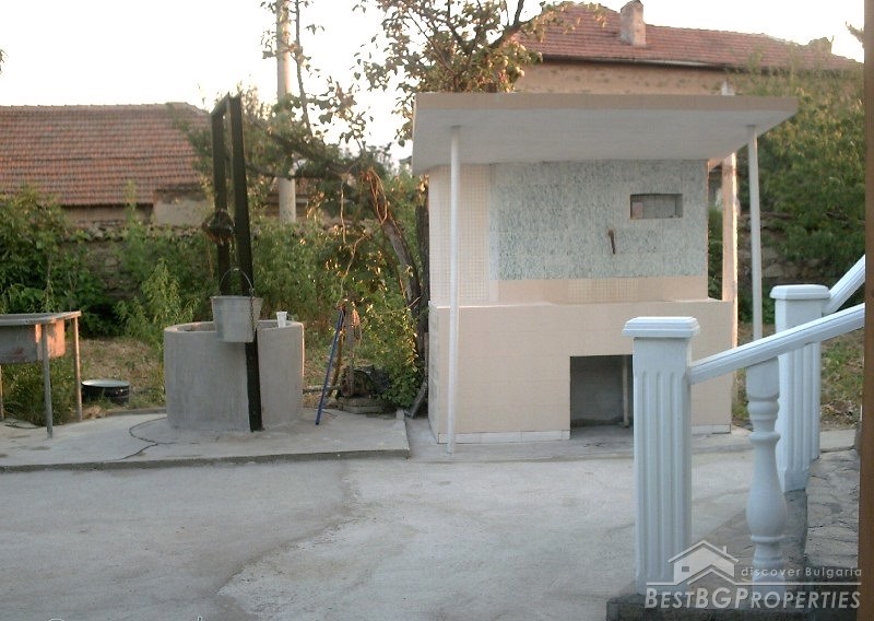 The property consists of a yard of about 640 square meters, a house - about 80 square meters. In the yard there is a garage, summer kitchen, barn, well, fountain, and outside bathroom. The house is two-storied. On the first floor there is a bedroom, living room with bar, and toilet. The second floor has a bedroom, children's room and as well a bathroom with WC. The house has been renovated. It is very comfortable with functional distribution of the premises and has great views of the Balkan.