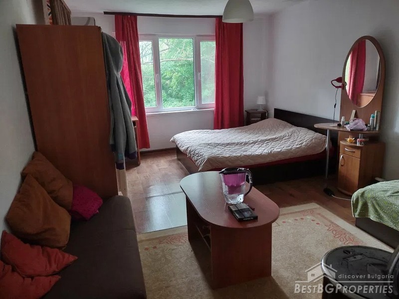 First floor (70 sq m) - two large rooms - large bedroom and a large dining room with kitchen, a large veranda accessible from both rooms and from the yard and an internal bathroom. This floor is after renovation - replaced PVC windows, brand new bedroom, brand new kitchen, new bathroom with toilet. The price includes a washing machine and a dishwasher, as well as a stove. There is a basement under the house - about 30 square meters. There is running water in it.