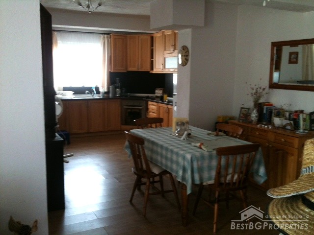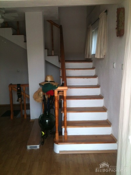 The house has a fitted kitchen, a lounge and dining room on the middle floor with open plan style. Upstairs it consist of two bedrooms a bathroom, toilet and shower room. The basement floor is large enough and could be organized into three or four rooms. There is a large veranda of 18 square meters with views of the Greek mountains to the south.