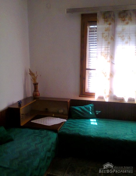 The offered house comprises with built area of 150 sq m. It is on two residential floors, built on a plot of land with size 500 sq m. It consists of a bathroom, kitchen, basement, spacious living room and three bedrooms. The property is connected with free water from the dam which can be used for irrigation. The house is massive construction, in very good condition, ready to move in.