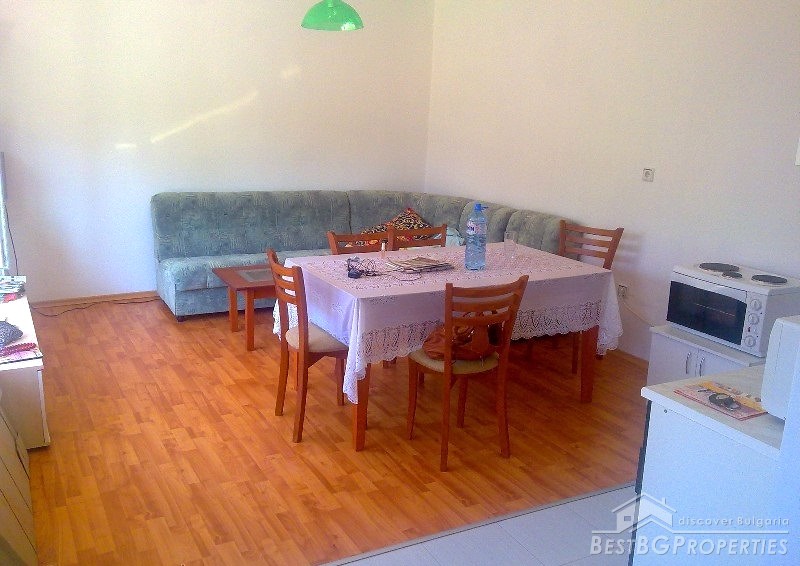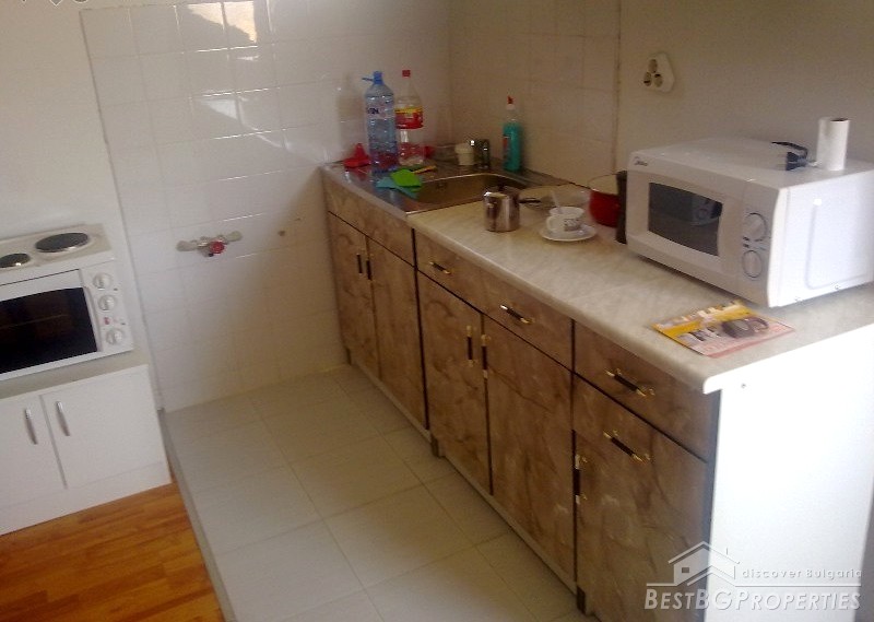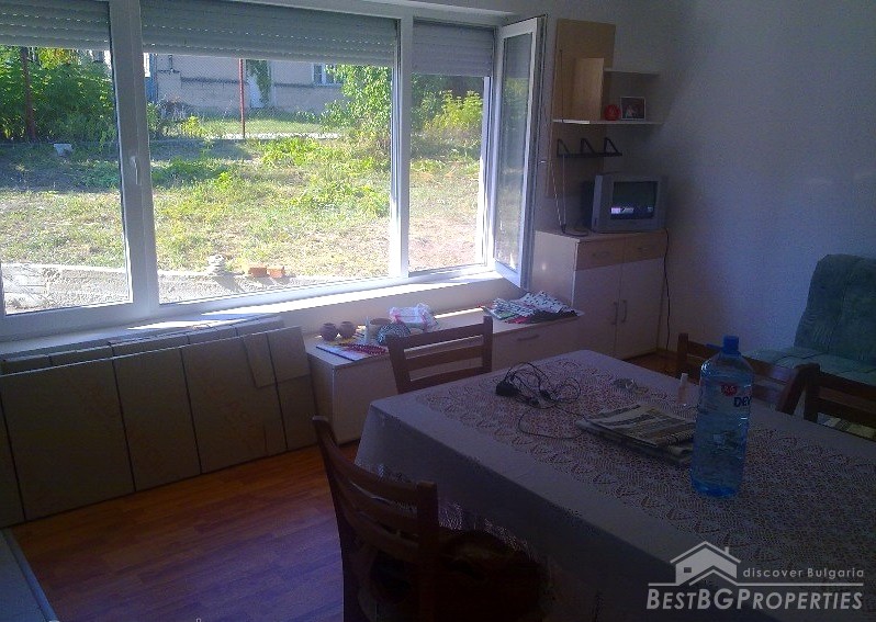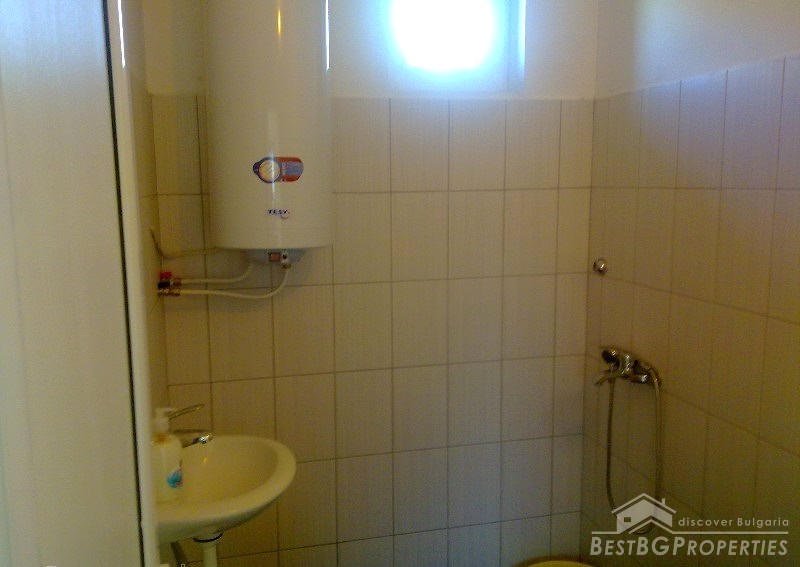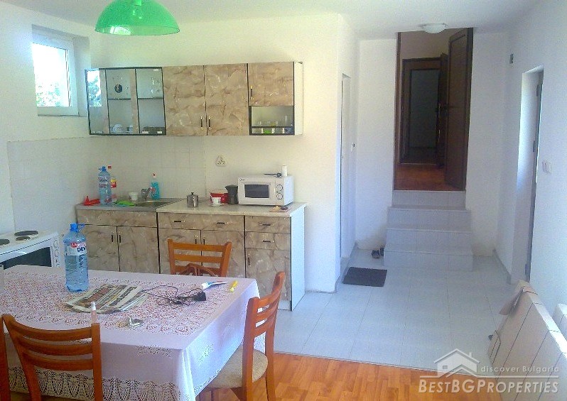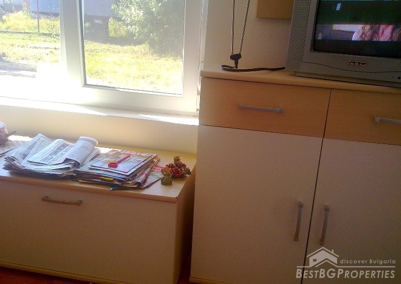 The living space of the house is distributed on two levels. The first floor consists of a huge living room with kitchenette, bathroom and WC, outside isolation. The second floor comprises of three bedrooms, a hallway and a bathroom with WC. There is also a basement and a premise for the central heating. The property benefits from a large barbeque with area 20 sq m. All inside doors are new. The front door is armored, all windows are PVC, with shutters and mosquito nets.