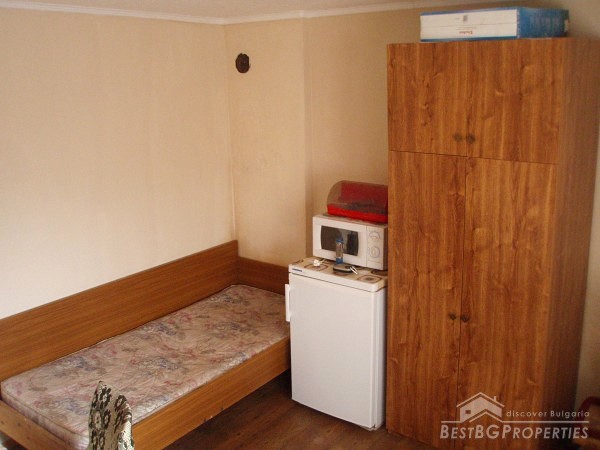 The house comprises of two residential floors and total living area of 45 sq m. On the second floor there are two rooms, furnished, and with new wooden window joineries with double glazed windows, laminate flooring. The roof was completely renewed. There is an attic premise that can be converted for additional accommodation, with Belgian window and two circular windows. The yard is 600 sq m in size. It has many fruit trees - around 20. There is a concrete fence under construction, but not yet finished. The materials for which are included in the price.