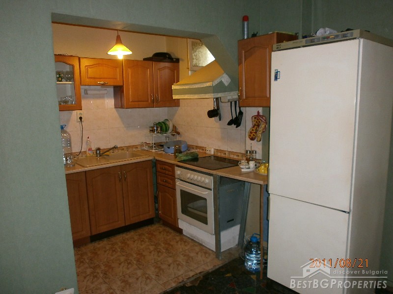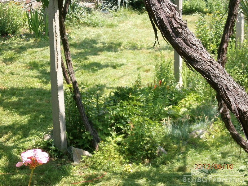 The house is two stories, sits on a plot of land with size 507 sq m. It has total living area of 200 sq m - 80 sq m ground floor and 120 sq m first residential floor. The house consists of two bedrooms, living room, dining area with kitchen box, verandah with south exposure. It has a fireplace, equipped and connected to the central heating. The property is situated in a quiet and calm area.