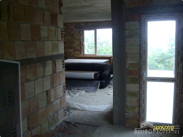 The house is new brick built construction with and area of 130 sq m distributed between two residential floors. It is built on a spacious plot of land with size 800 sq m. There all communications inside the house - electricity, water, pipes for the sewer line. There is a large bathroom and a separate WC. The house comprises with a wet premise, large living room with kitchen box, large corridor, verandah covered with wood. From the windows of the house opens amazing view. The roof is with Austrian design. There is also a beautiful terrace.