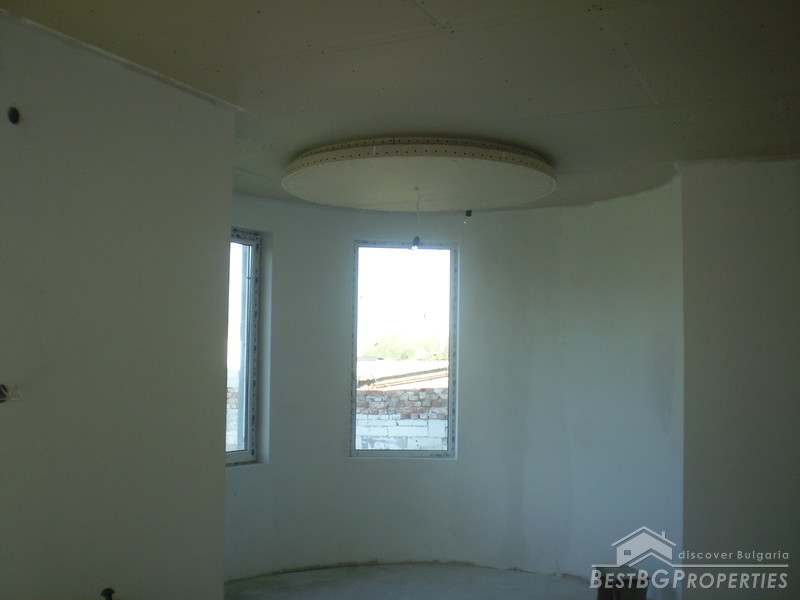 The property we offer consists of two storey house, a yard and a garage. The house is 170 sq m in size; it is finished by the highest standards with best quality materials. Inner and outer isolation, PVC window frames, installed electrical installation, switches and plugs. The house has an interesting architecture, it house consists of 2 floors. On the first floor there is a living room, dining room with kitchen, bathroom, WC and balcony. On the second floor there are 3 rooms, big bathroom with WC and balcony. The yard is 470 sq m in size, it is beautifully landscaped with green grass and few trees. The size of the garage is 60 sq m. it is facing the road asphalted road. The property is situated in a main asphalted road in the village which guarantees easy access all year around. From the windows and the balconies of the house opens a magnificent view to the Mountain of Vitosha and the city of Sofia.