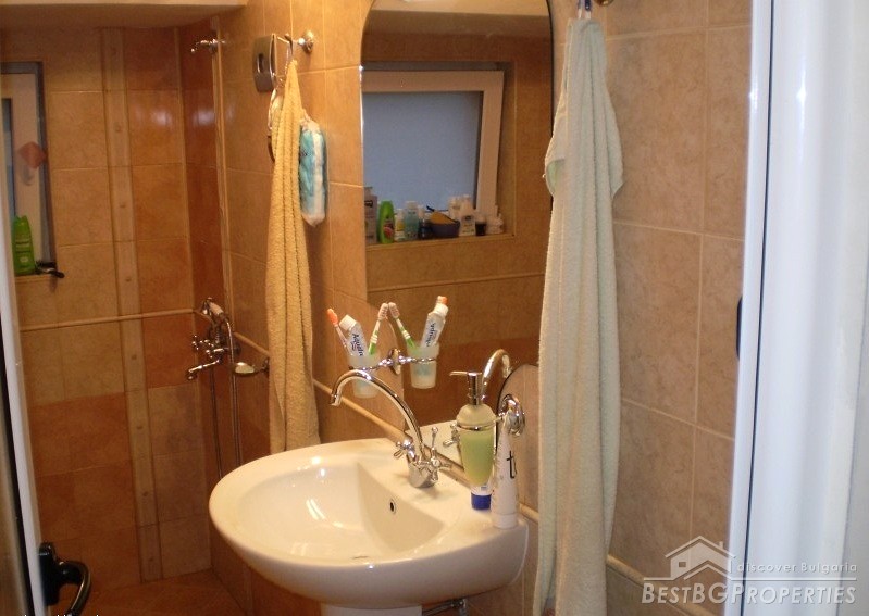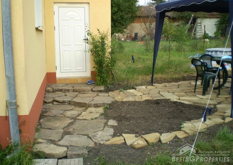 The house has the fallowing distribution: first floor - lounge, separate kitchen, living room, and a bathroom with WC. Second floor - one bedroom, children's room, and a balcony. The property is entirely renovated. It has new outer isolation on the walls - 60 mm tick, five-chamber PVC window joinery with triple glazing, isolation of the roof, brand new water and electrical installations, local water cleaning station.