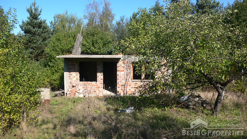 The house is finished on rough stage of completion - act 14. It comprises one residential floor and is brick built with concrete plates. The living area is distributed between three rooms. In the yard there is a well for irrigational needs, many fruit trees, electricity reaches the door. The parcel is 640 sq m large. The asphalted road is just 20 meters from the property.