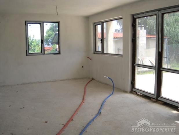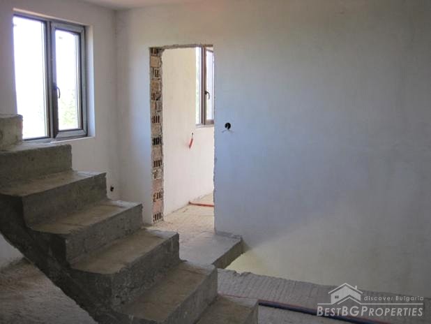 The house comprises total living area of 270 sq m. The living area is distributed between three residential floors. The house is finished according to the Bulgarian standards - on plastering and putty, thus you will have the chance to make the final inner finishing according to your own taste and requirements. There are all communications - water, electricity, installation for the heating, PVC window joineries. Adjacent to the house there is a garage with direct access to the street. The property comprises with large yard - 720 sq m in size, totally flat and surrounded from all sides by a fence.