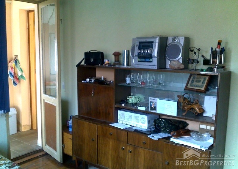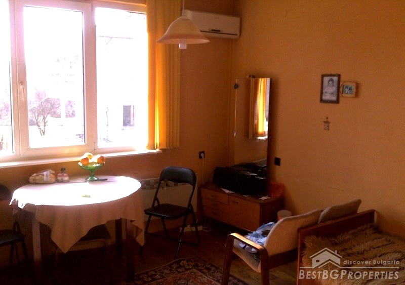 The floor is furnished, with heating - air conditioners, isolation, and PVC window joinery. It consists of 2 bedrooms, living room with kitchen box, bathroom and one empty room - storage. The finishing comprises of wooden and granite floors, latex painted walls.